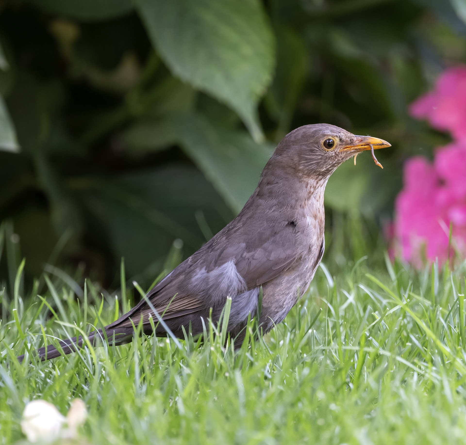 Quando è a caccia si muove saltellando o correndo sul terreno per immobilizzarsi all’improvviso a guardare in basso con la testa girata da un lato per poi estrarre un lombrico e riprendere la corsa. Ama i prati e le aiuole, dove scava con le zampe e col becco rimuovendo foglie e terriccio (e sparpagliando tutt’attorno la corteccia, nel mio caso) alla ricerca di lombrichi.